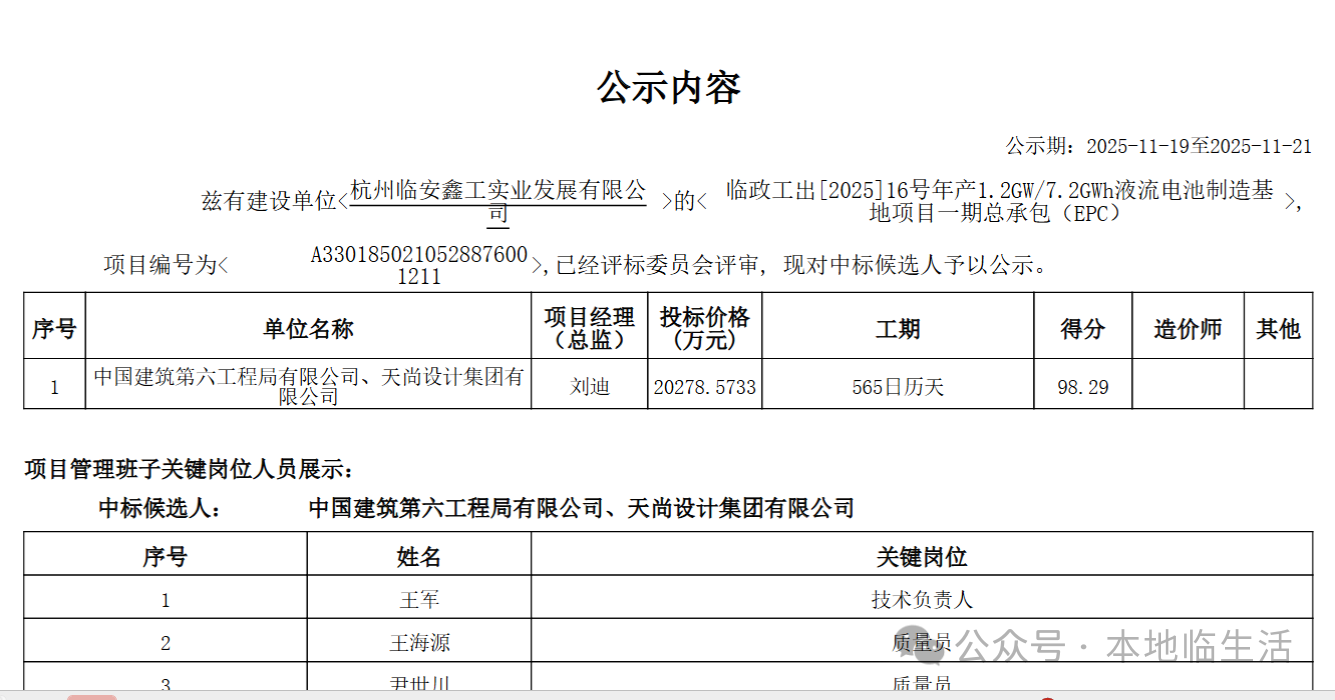 日,41万方大体量-新智造产业园--液流电池制造基地项目一期总承包(EPC)中标公示。