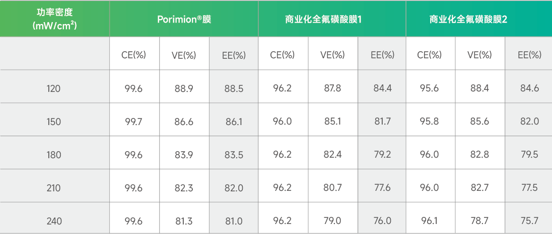 高强超薄:拉伸强度和穿刺强度较全氟磺酸膜提升80%以上,不惧碳纤维穿刺,用于电堆的均质膜厚度降至25微米,显著提升电流密度。