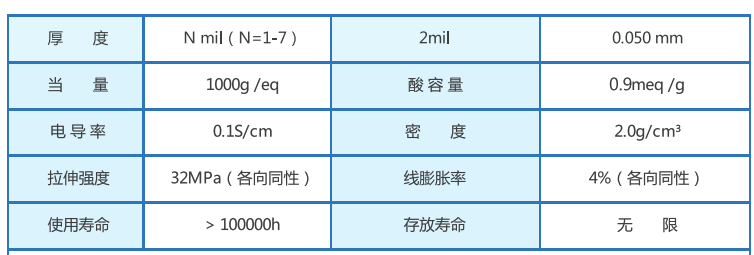 JH-IEM-10N全氟离子交换膜具有酸容量高、电导率高、结晶度高、拉伸强度大、线膨胀率小、各向同性、寿命超长等一系列优点,是钒电池、液流电池、燃料电池、离子膜电解槽、电化学传感器核心材料的理想选择。